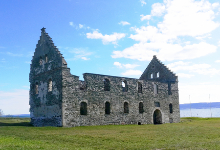 VISINGSO, SWEDEN - APR 14, 2019: The ruins of the Visingsborg castle built by the Brahe family in 1570. April 14, 2019, Visingso, Sweden