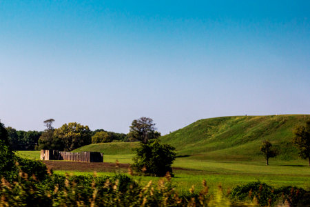 Stockade Wall and Monks Mound, Cahokia Mounds State Historic Site, Illinois