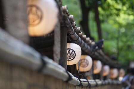 Japanese style yard street food diner tatinomi bar Tebura sika. lantern decoration .concept asian culture.Russia, Moscow, 14okt2021.