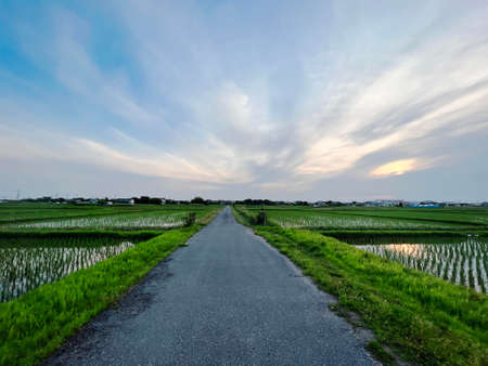 Chiba, Japan - 19 May 2022: Rice field in Kisarazu City Chiba. Rice is the main food in japan.