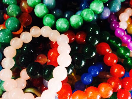 Texture, background, pattern. Folk art. Beads from multi-colored stones and glass