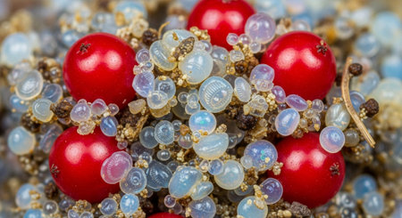 Orbiz sprinkled on top of a white plate. Decoration of water balls with hydrogel - orbeez.
