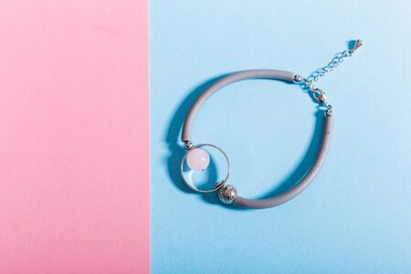 Beautiful bracelets on pink background