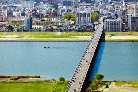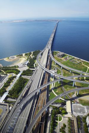 Aerial view of an expressway bridge in okyo, Japan