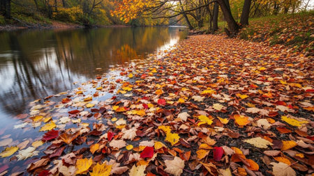 An AI generated illustration of autumn leaves on the ground in a park