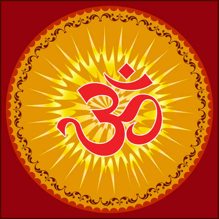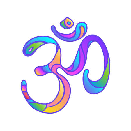 Om sign. Vector sacral icon. Meditation round symbol. Yoga. Color illustration
