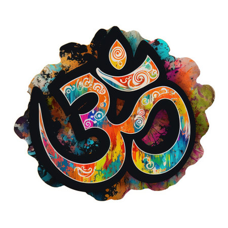 This vibrant mandala design features the Om symbol in the center, surrounded by colorful gemstone accents. Perfect for spiritual and artistic themes.
