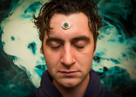 Astrological abstract composition with empty starry sky for zodiac sign symbol, abstract vivid composition consists of fictional unreal fantastic vision on background for diverse creative work