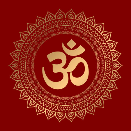 om symbol, aum sign, with decorative indian ornament mandala, isolated on white background. vector illustration