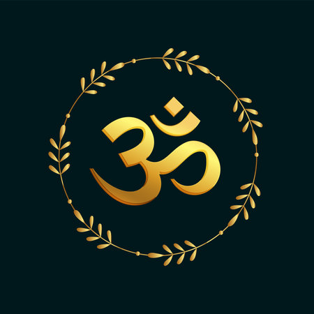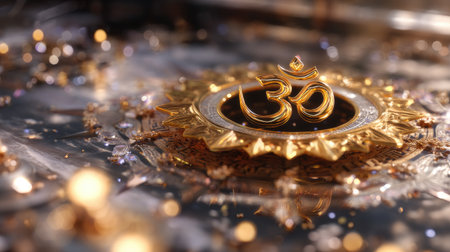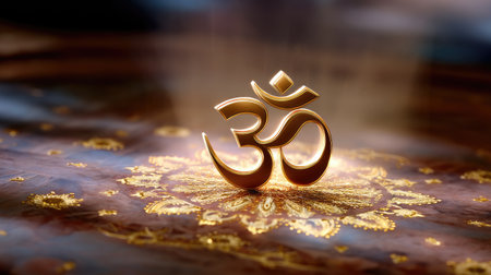 This striking image features an ornate golden Om symbol against a beautifully detailed background, evoking feelings of spirituality and calmness, ideal for creative projects.