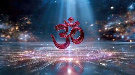 A stunning 3D representation of the Om symbol radiating vibrant red hues, surrounded by a soft glowing background. Perfect for themes in spirituality and meditation.