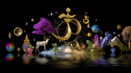 This captivating image features a blend of spiritual symbols and natural elements, creating a serene atmosphere that embodies peace and harmony.
