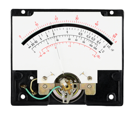 Analog measure tool multimeter scale with pointer. Isolated on the white background
