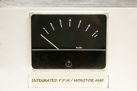 Close up of a vintage amplifier master volume knob.