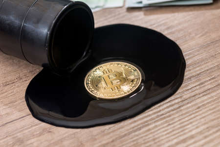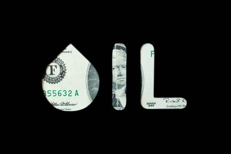 Petroleum. Black oil sign on a two dollar bill black background concept.