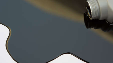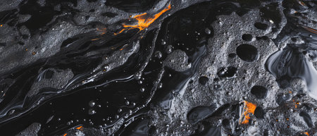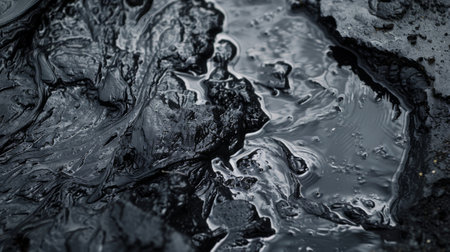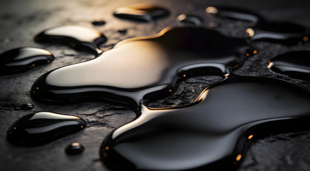This captivating image features a glimmering black fluid spilling gracefully over a smooth surface, creating an artistic composition ideal for modern design projects.