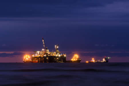 Oil rig during sunset in Baku, Azerbaijan in Caspian Sea
