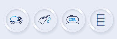 Set line Barrel oil Oil tank storage Canister for motor machine and Tanker truck icon. Vector.
