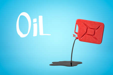 3d rendering of red jerryan tilted in air and pouring down some oil on light-blue background with title Oil.