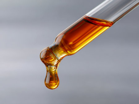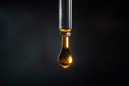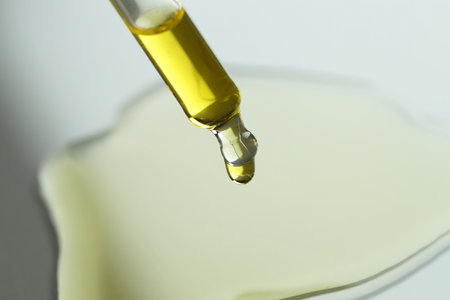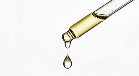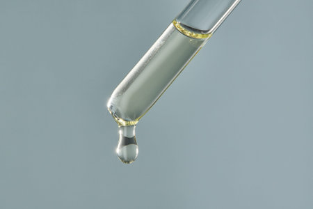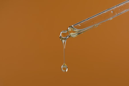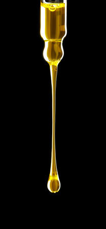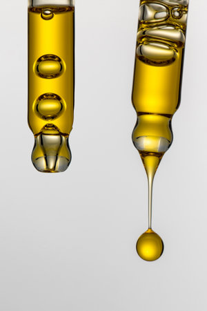 A drop of cosmetic oil falls from the pipette