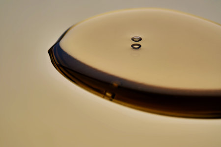 Macro shot shows fluid and ripples with bokeh lights