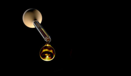 glass dropper with black background and orange liquid
