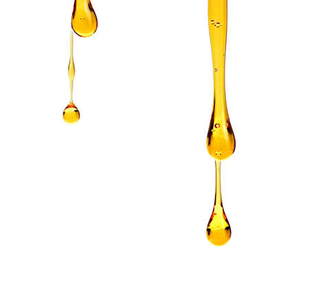 The oil flows and collects into a drop. The texture of the cosmetic product.