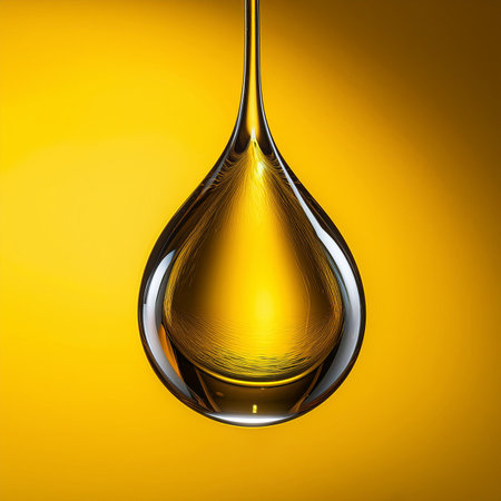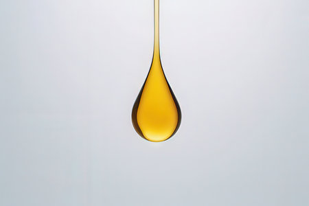 The oil flows and collects into a drop. The texture of the cosmetic product.