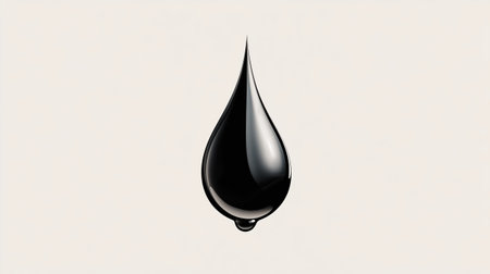 A dark, glossy liquid sphere begins to elongate into a teardrop, creating ripples on a reflective water surface, evoking a sense of motion and elegance