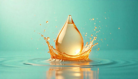 Close-up of golden liquid splashing. Ideal for abstract, liquid, and fluid themes.