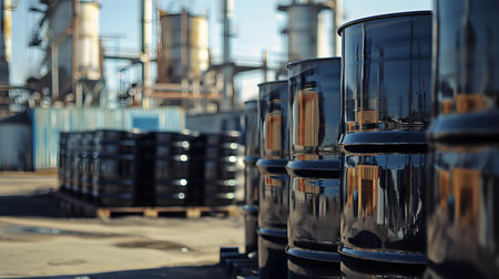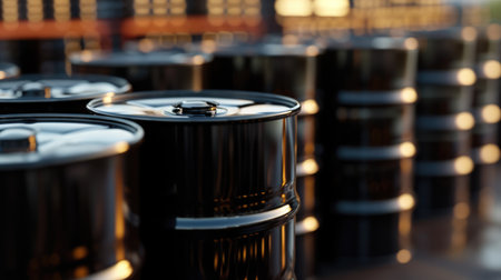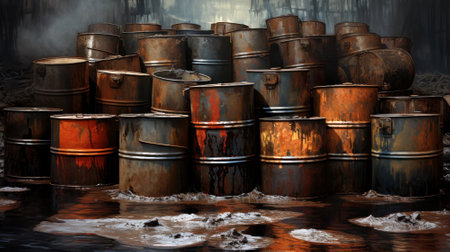 black oil in black canister or barrels close up background, created using ai tool