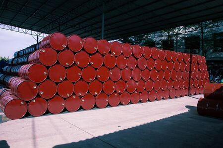 oil barrels red or chemical drums stacked up