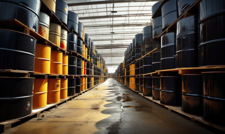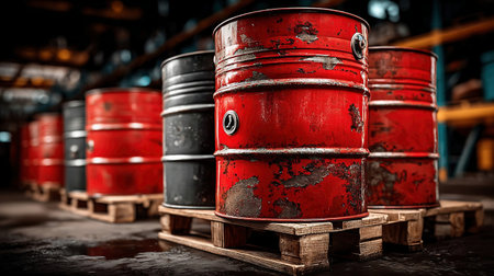 Fuel Storage Barrels in a Gritty Warehouse