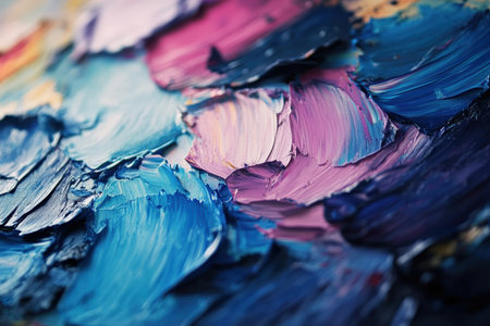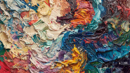 Oil paints mixed on canvas, artist's palette, material texture, studio shot, colorful abstract art background
