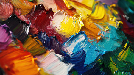 A vibrant collection of colorful paint strokes creating an abstract texture. This artwork captures the essence of creativity and artistic expression.