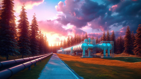 Efficient transportation of oil and gas through vital pipelines plays a crucial role. Concept Oil and Gas Transport, Pipeline Efficiency, Energy Infrastructure, Environmental Impact