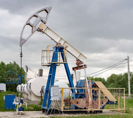 oil pump on a background storm sky