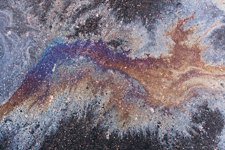Gasoline Spill on Asphalt close up macro image