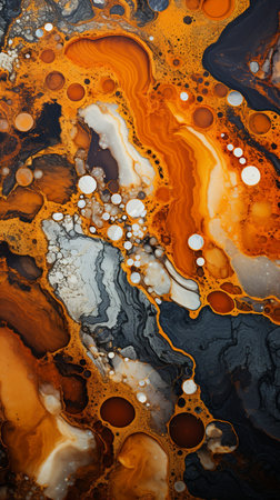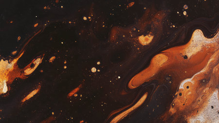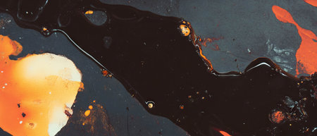 Seamless pattern texture of thick black motor oil with orange highlights