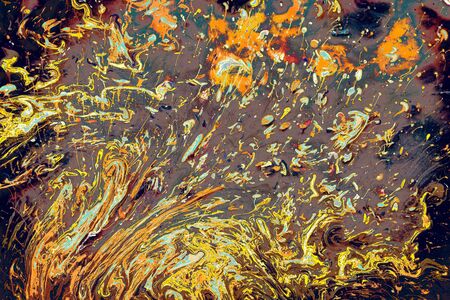 Spot gasoline. Puddle of fuel. acid colors. Texture bright liquid.