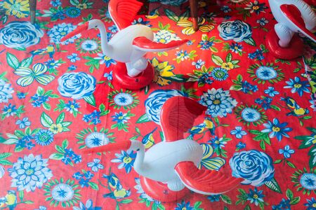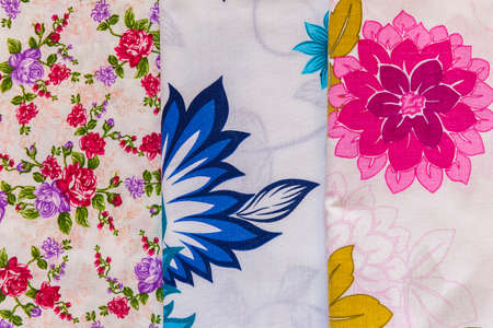 A close-up view of beautifully folded floral fabric showcasing vibrant colors and intricate designs. Perfect for home decor, crafts, and fashion projects.