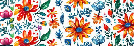 Seamless pattern with stylized flowers and leaves. Vector illustration.