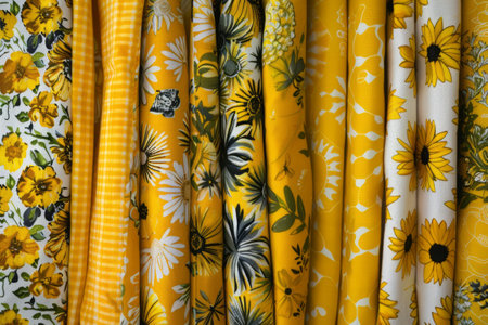 Fabric pattern background in yellow colors. Mix textile fabrics. Generative AI illustration