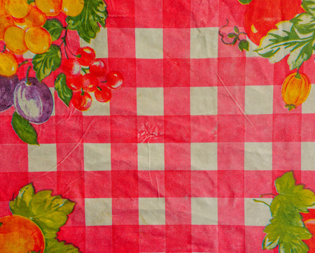Traditional white and red kitchen chekered towel rustic style for a picnic or tablecloth with tartan pattern. Gingham crampled texture for table napkin