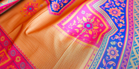 Explore the beauty of a vibrant traditional fabric featuring intricate patterns and rich colors. Perfect for art, fashion, and decor inspiration or showcasing craftsmanship.