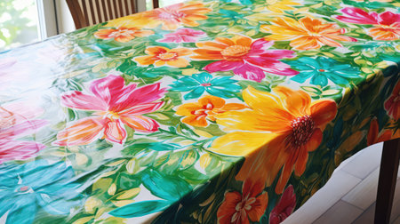 Close-up of a colorful floral pattern on a textured fabric, highlighting design details. generative ai
