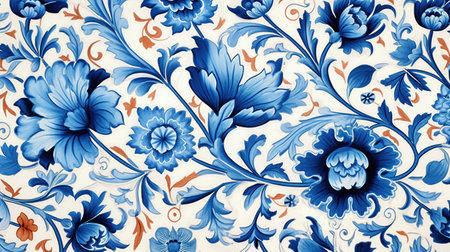 Vintage floral background in blue and white tones. Floral seamless pattern.