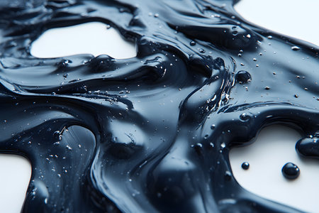 This captivating image features a glimmering black fluid spilling gracefully over a smooth surface, creating an artistic composition ideal for modern design projects.