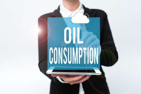 Handwriting text Oil Consumption. Conceptual photo This entry is the total oil consumed in barrels per day Presenting New Technology Ideas Discussing Technological Improvement