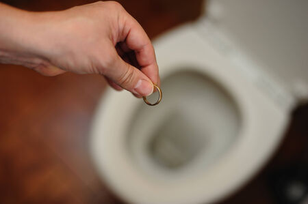 dependence on social networks and a smartphone, throws the phone into the trash toilet bowl hand, liberation from slave dependence online. deleting apps from a mobile phone
